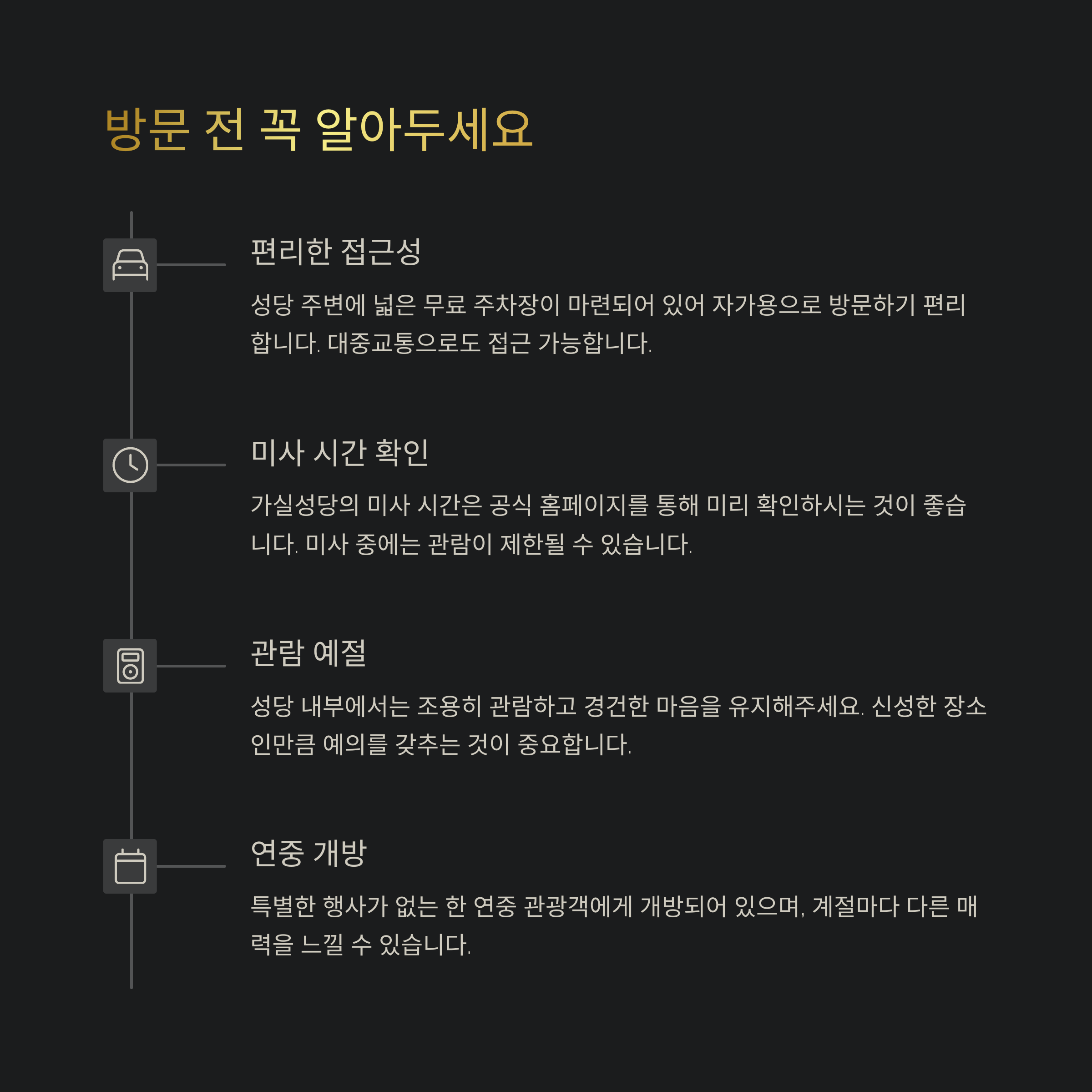 - 운영 시간: 미사 시간 외 자유 관람 가능