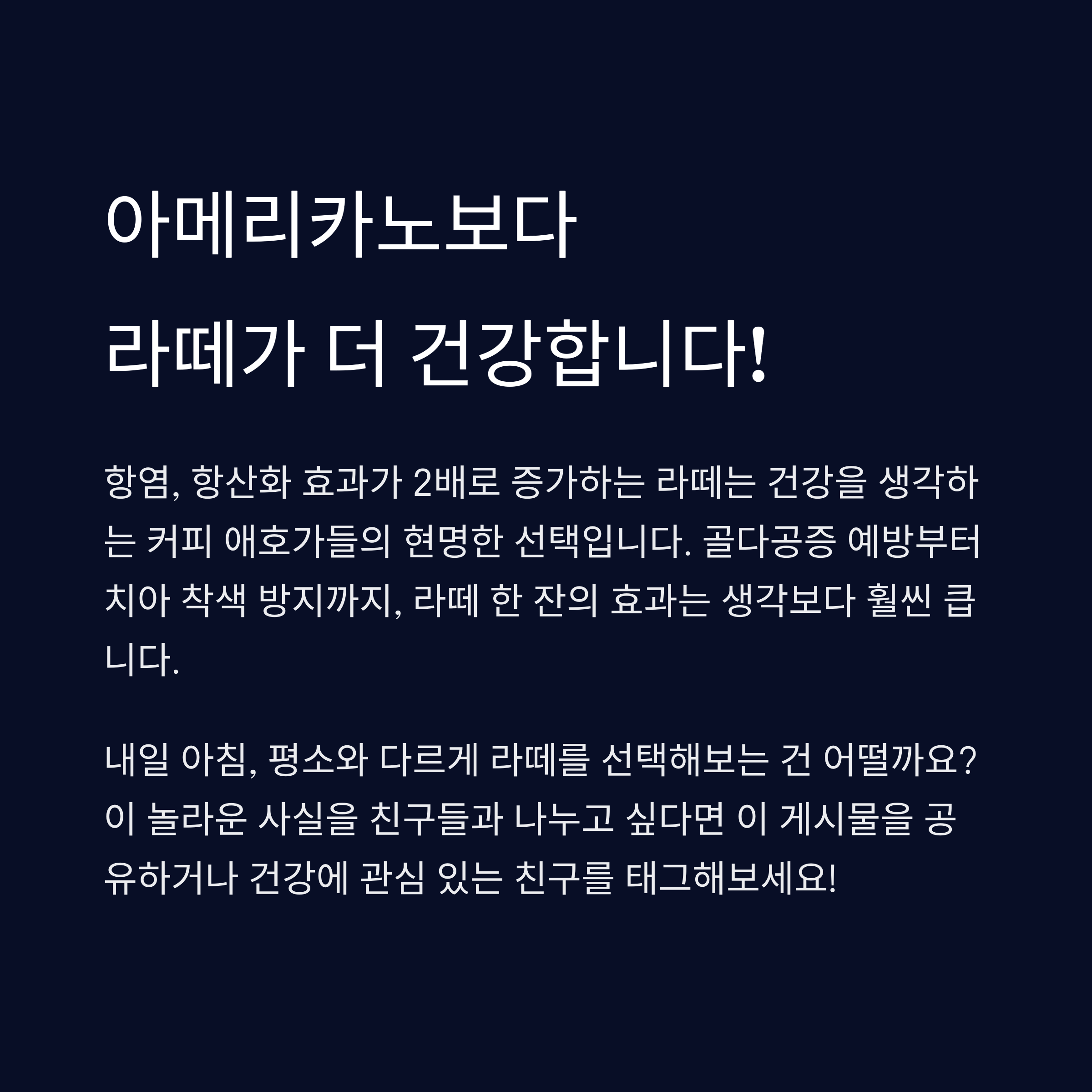 - 라떼로 마시기: 아메리카노 대신 우유나 두유가 들어간 라떼 형태 추천