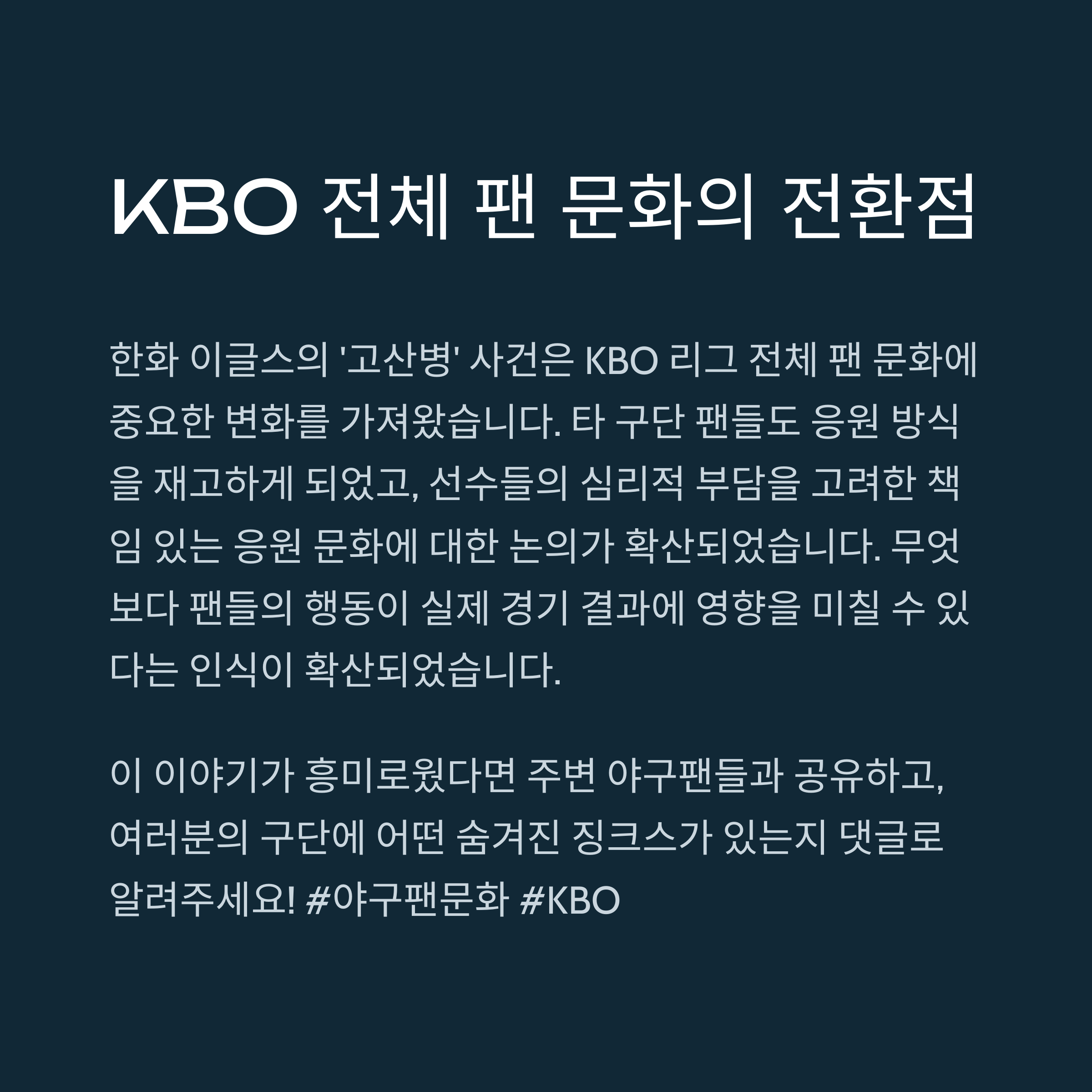 - KBO 응원 문화에 대한 사회적 성찰 촉발
