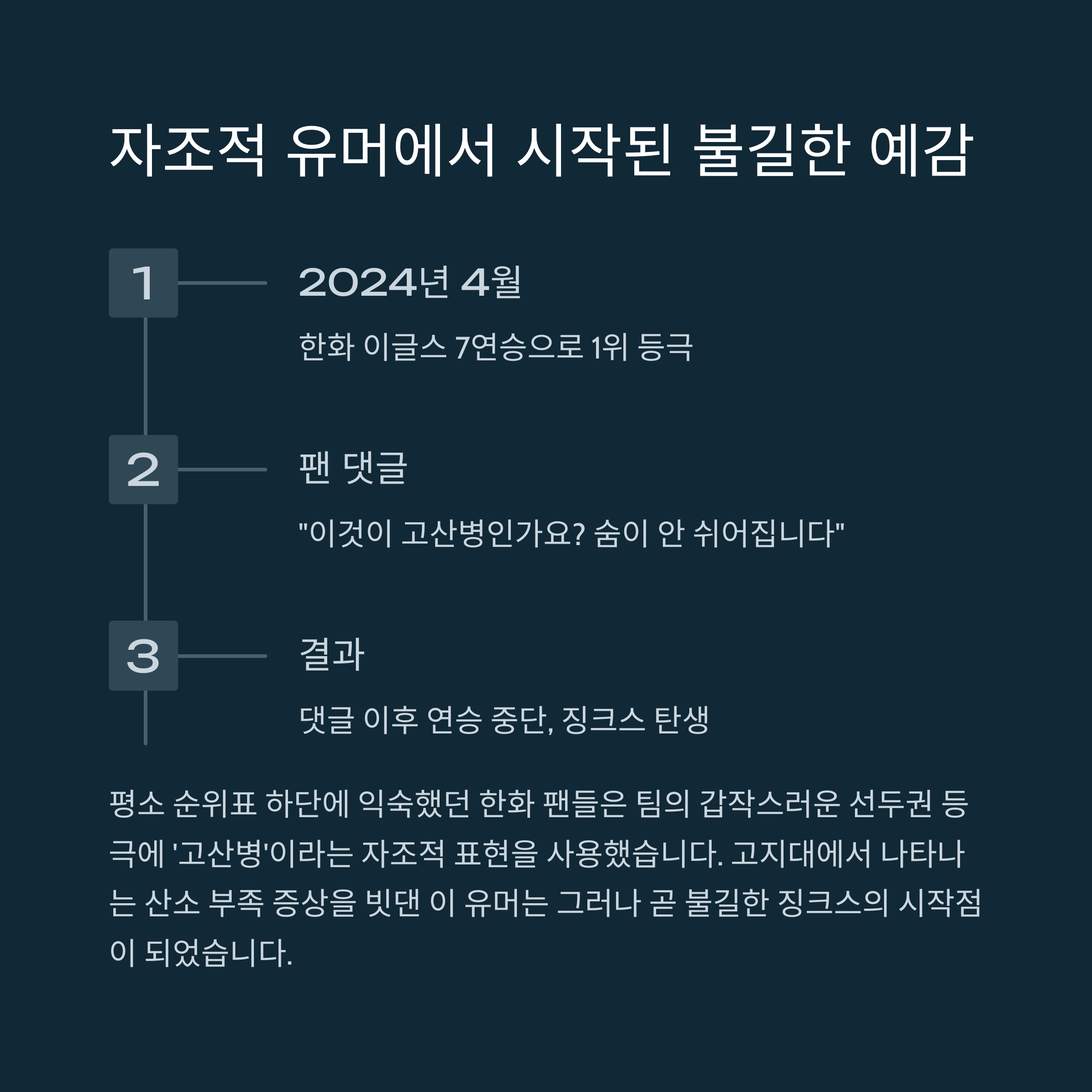 농담으로 시작된 ‘고산병’이 팀의 연승 흐름을 끊고 팬심을 뒤흔든 사건으로 번졌습니다.
