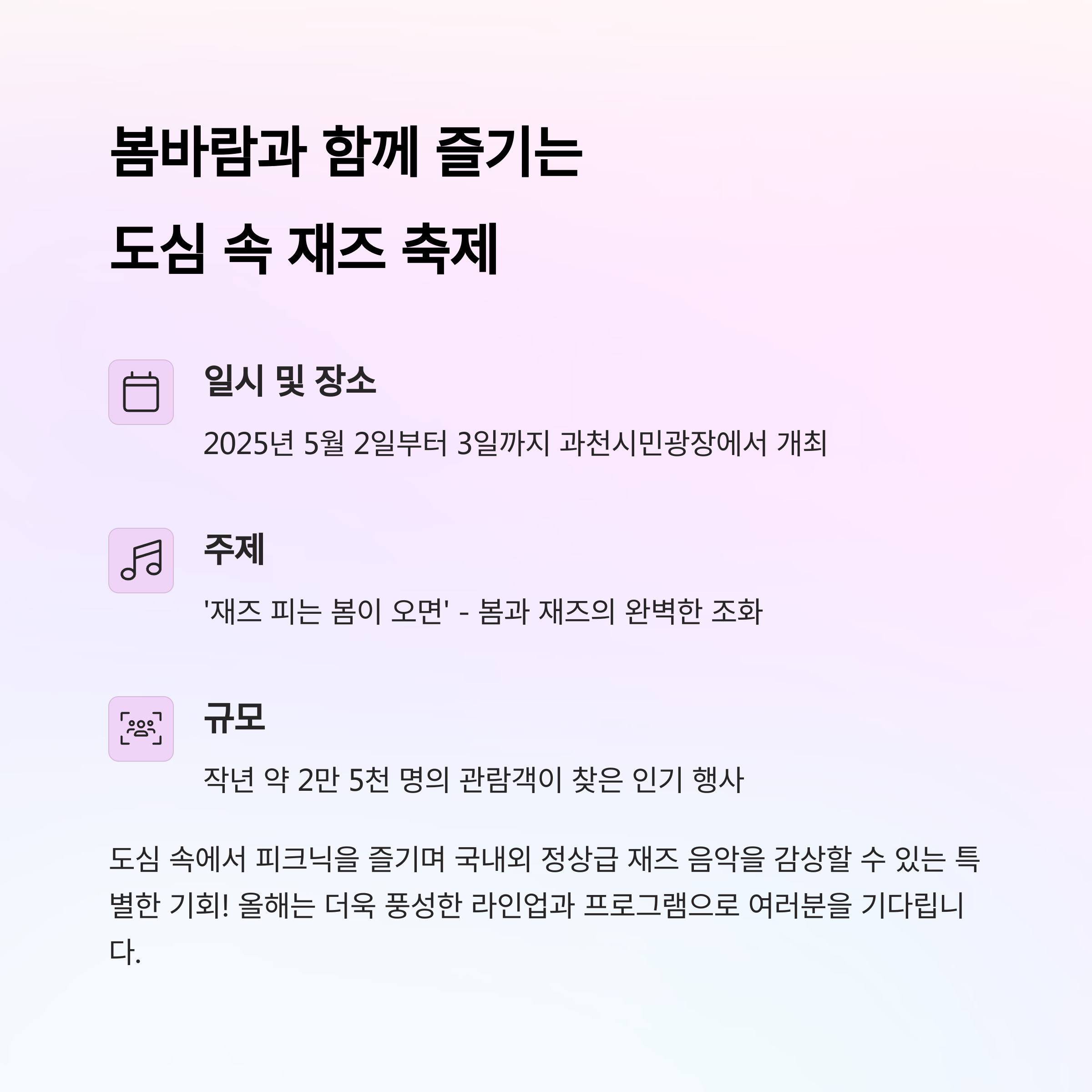 2025 과천 재즈 피크닉은 단순히 음악만 즐기는 축제가 아닙니다.