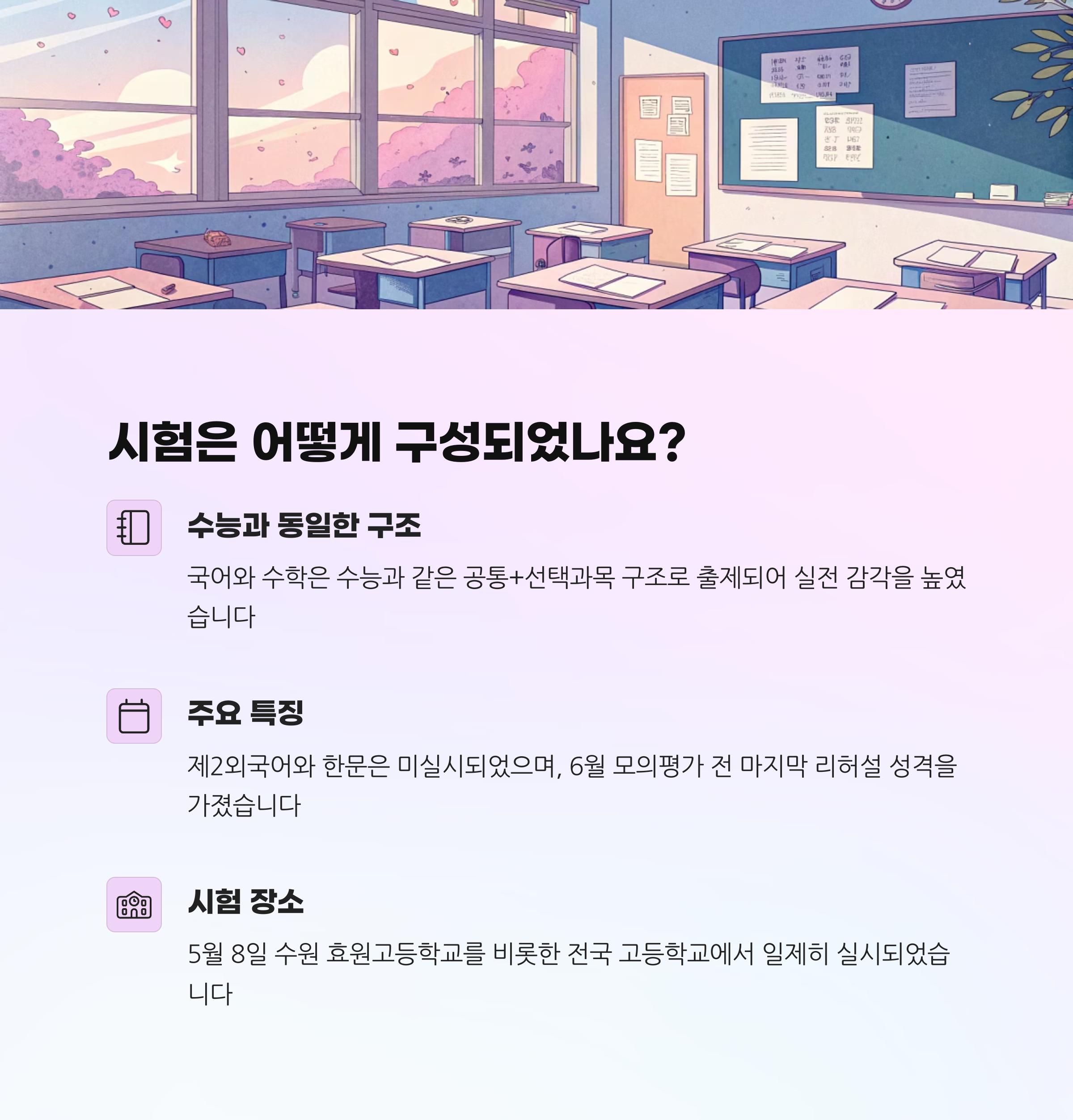 | 과목 구성 | 국어, 수학 공통 + 선택형 / 영어 / 탐구 / 한국사 |