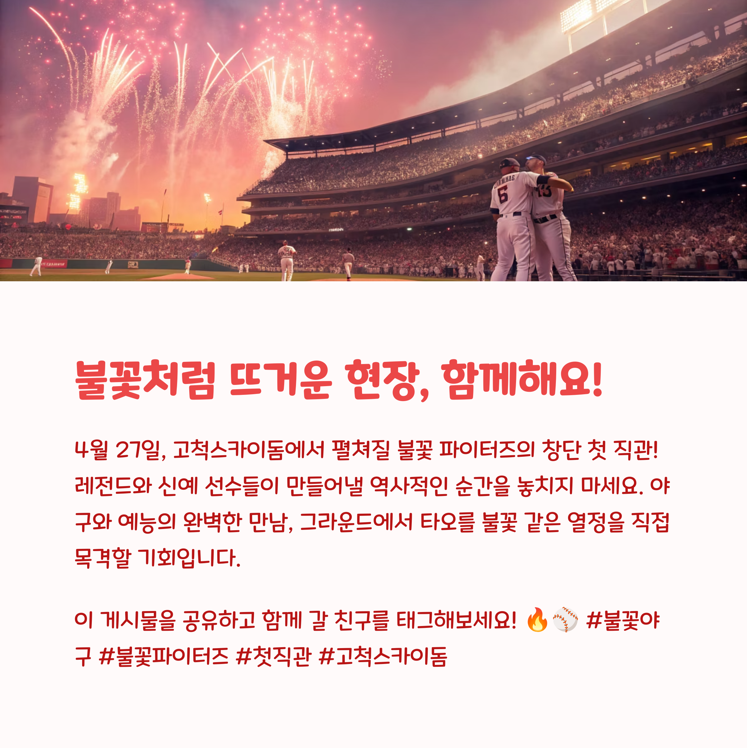 고척돔에서 펼쳐지는 불꽃 파이터즈의 첫 직관 경기, 예매 정보와 선수단 라인업을 한눈에 정리해드립니다.