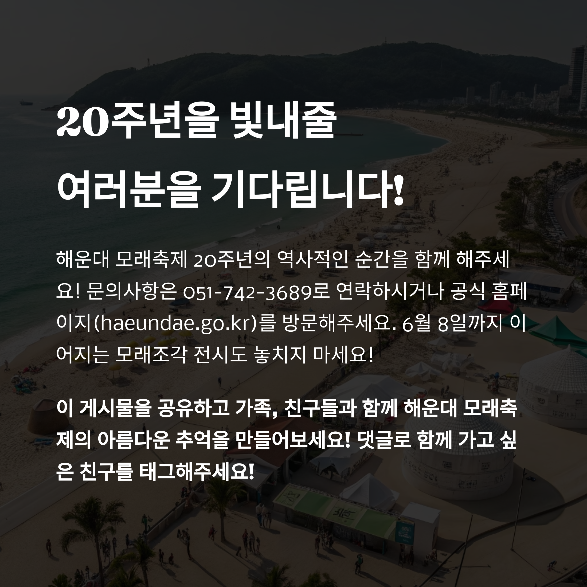 K-컬처와 함께 돌아온 역대급 20주년! 올봄, 가장 화려한 모래 예술이 해운대에서 펼쳐집니다 ⛱