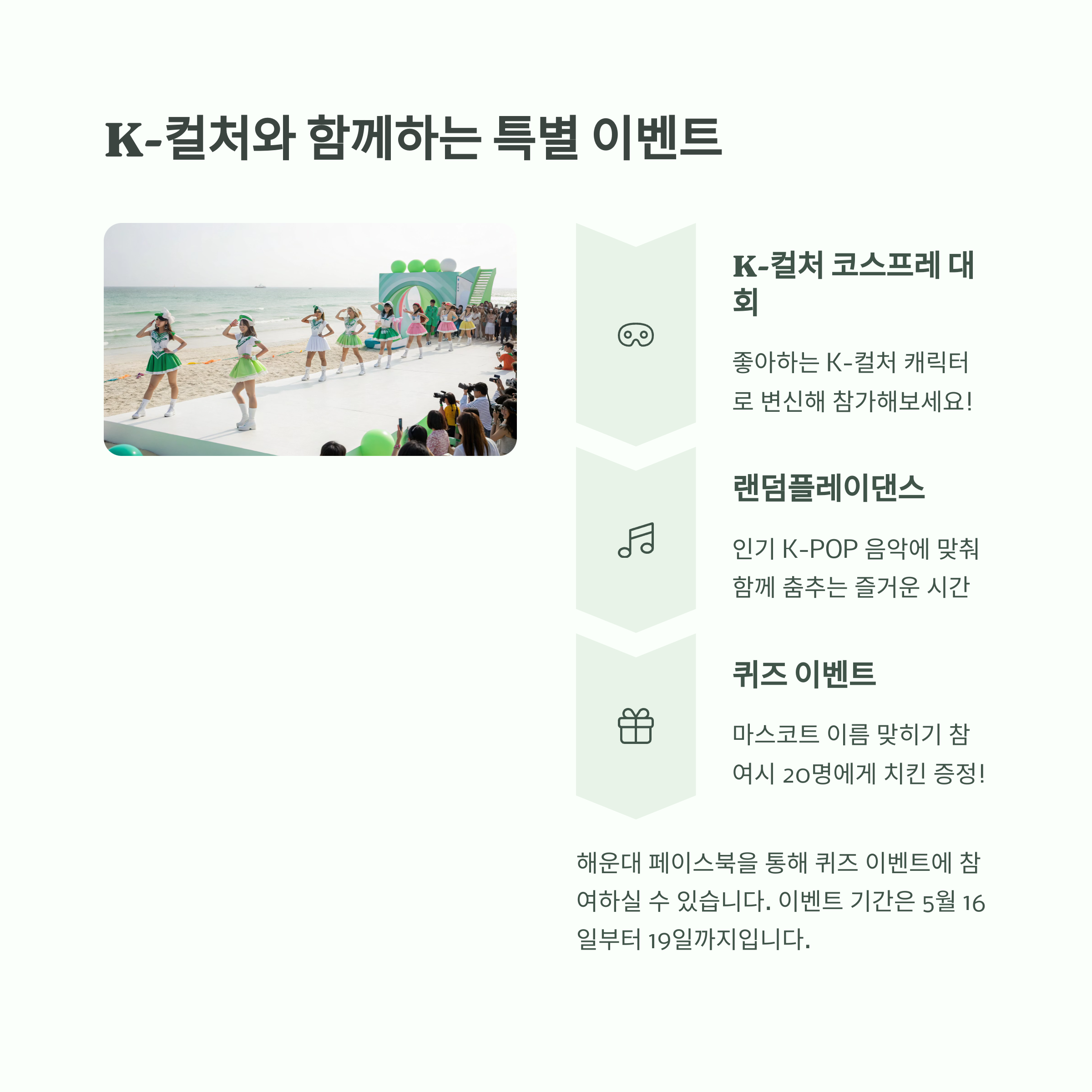 | 5.17 (토) | K-컬처 코스프레 퍼레이드, 나도 모래조각가 |