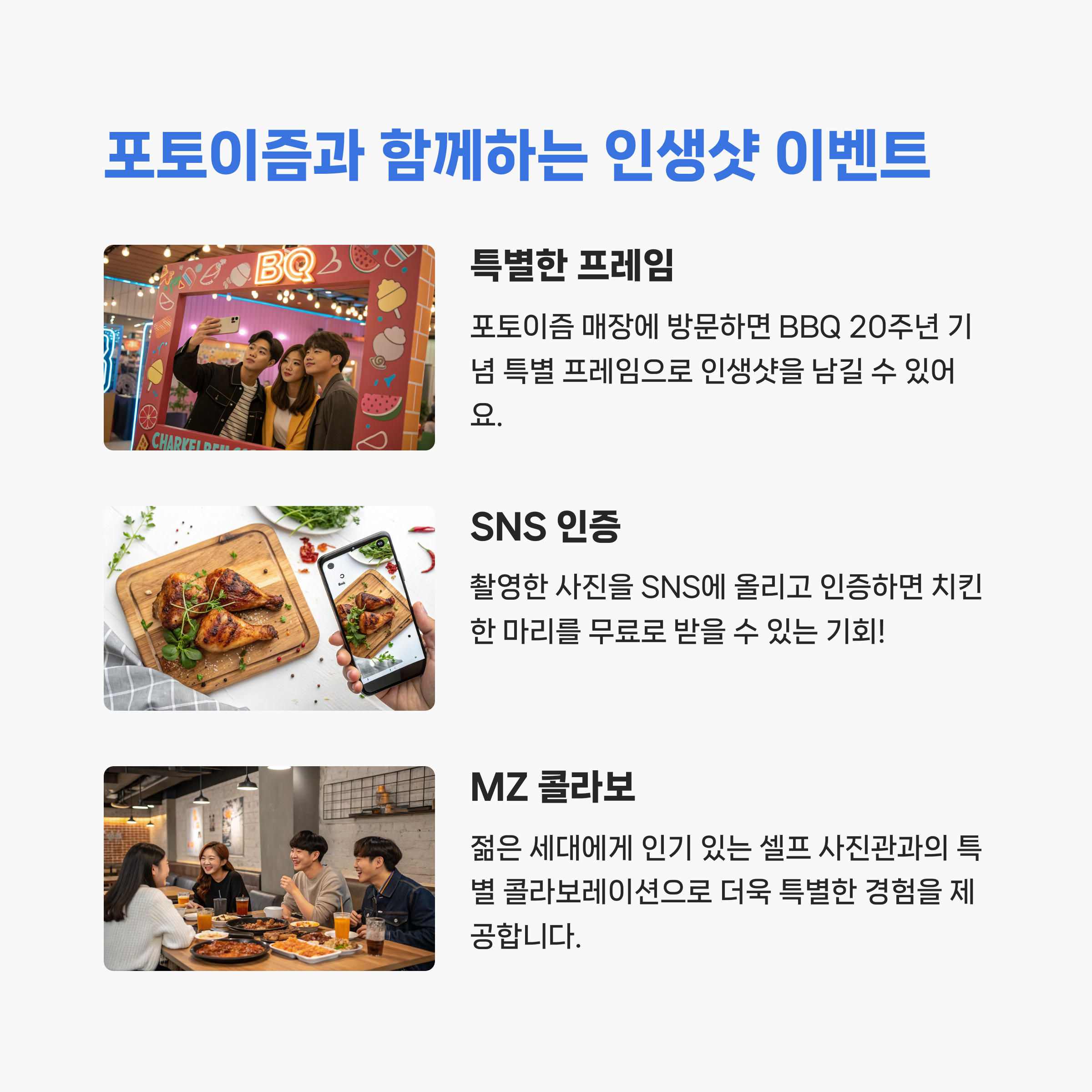 • 📸 포토이즘 부스 방문 → BBQ 20주년 전용 프레임 선택